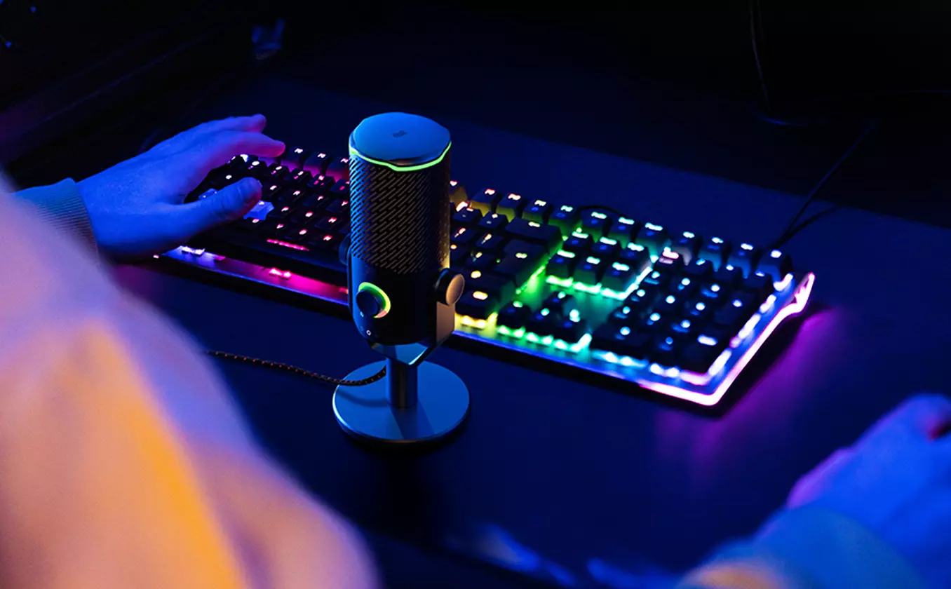 customize the mic's radiant RBG lighting, all