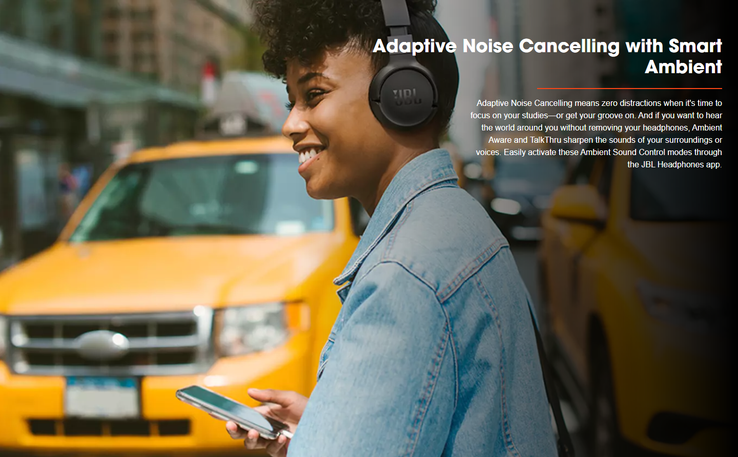 | Download the free JBL Headphones App to tailor the sound to your taste by choosing one of the pre-set EQ modes or adjusting the EQ curve according to your content, your style, your taste. Voice Prompts in your language guide you through the Tune 670NC’s other features. |