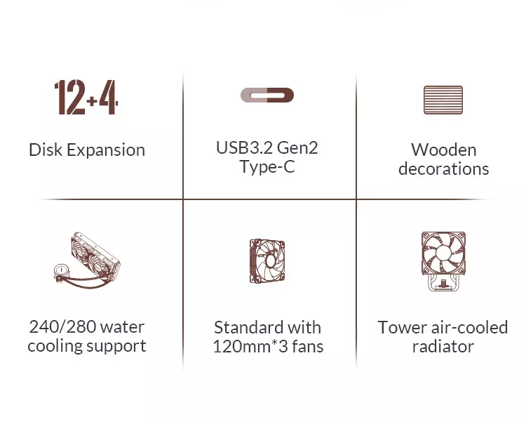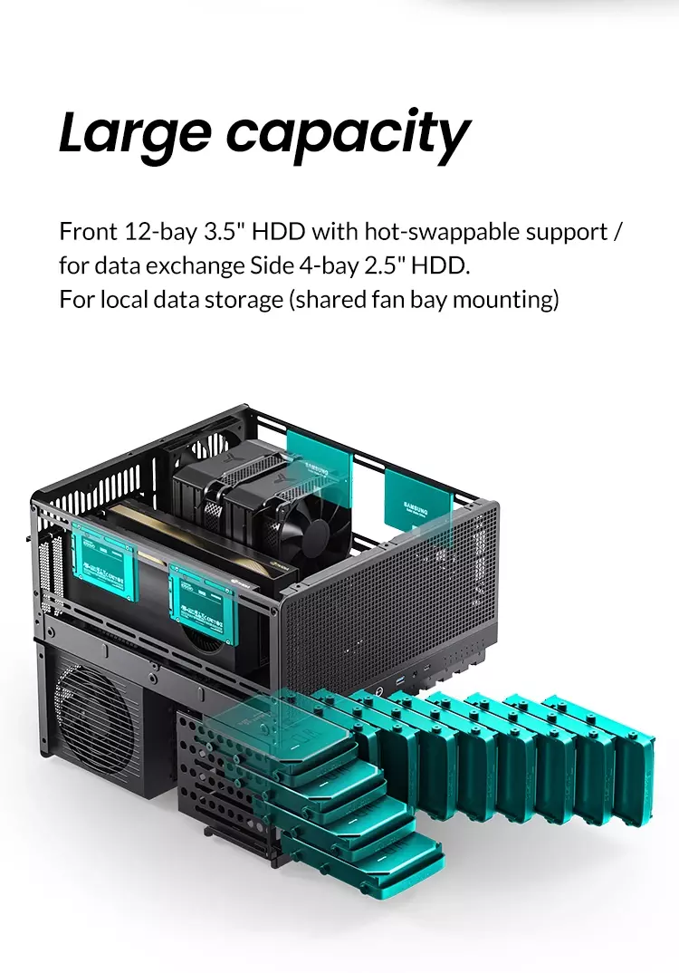 | Drive Bay | 2.5〞SSD*2 or 2.5〞SSD*4 / 3.5〞HDD*12 | |