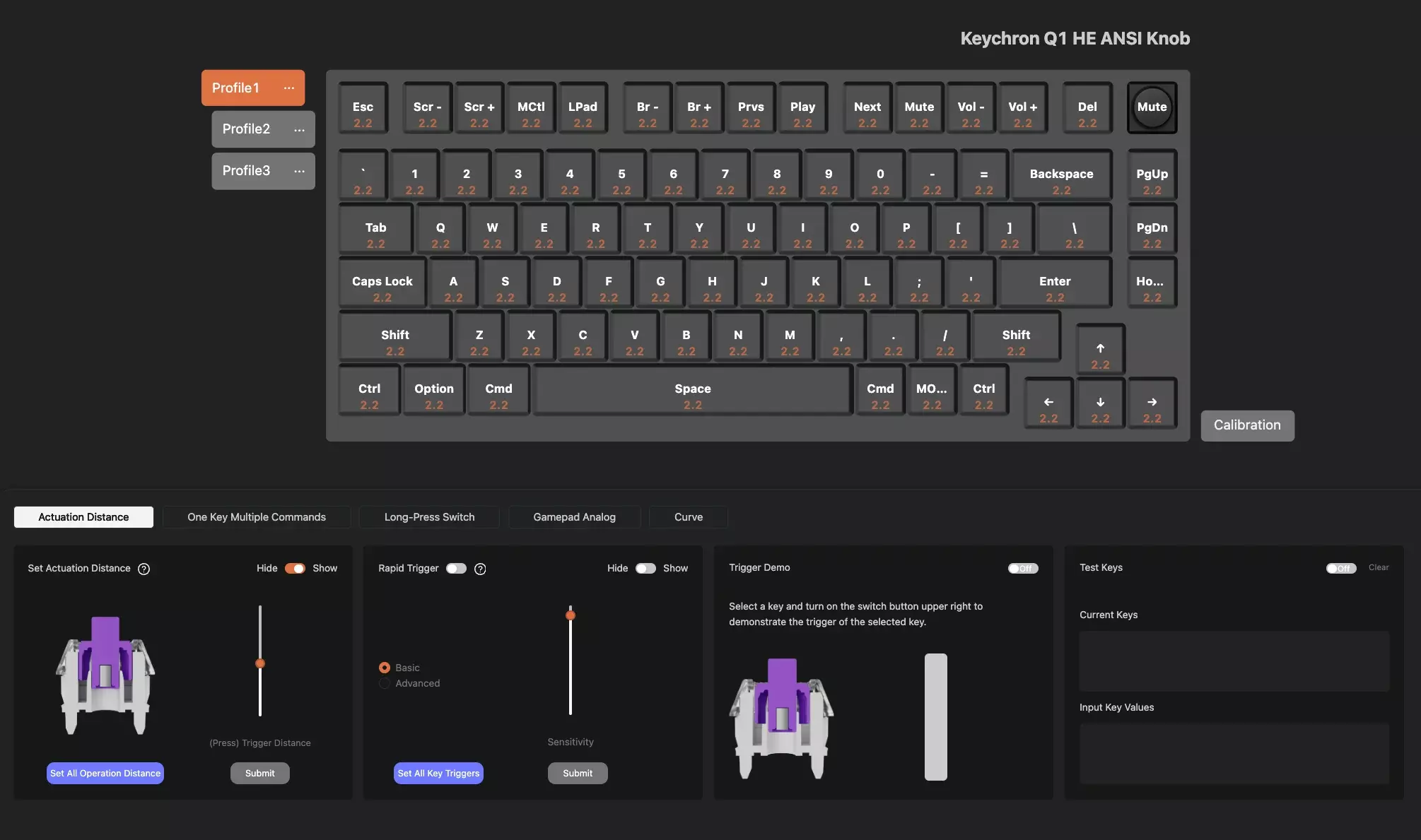 You can customize actuation points and assign multiple actions to a single key based on the travel depth you