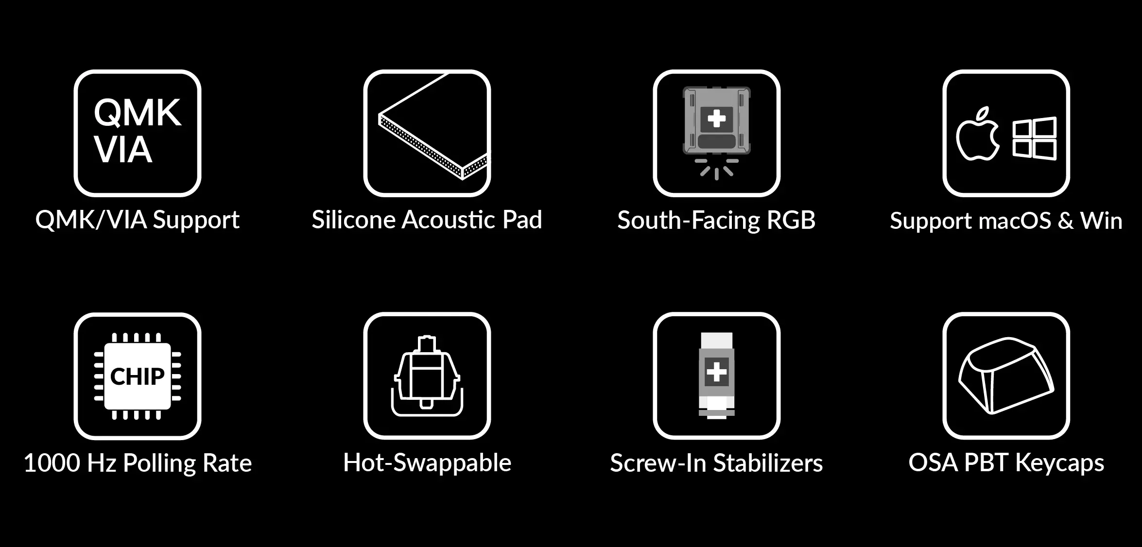 PBT keycaps, screw-in stabs, etc., which provides endless possibilities and a comfortable typing experience!