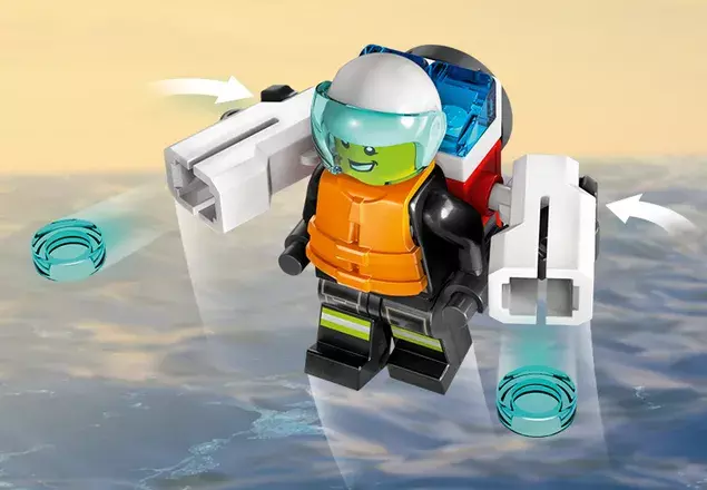Launch LEGO water elements from the boat’s extinguisher.