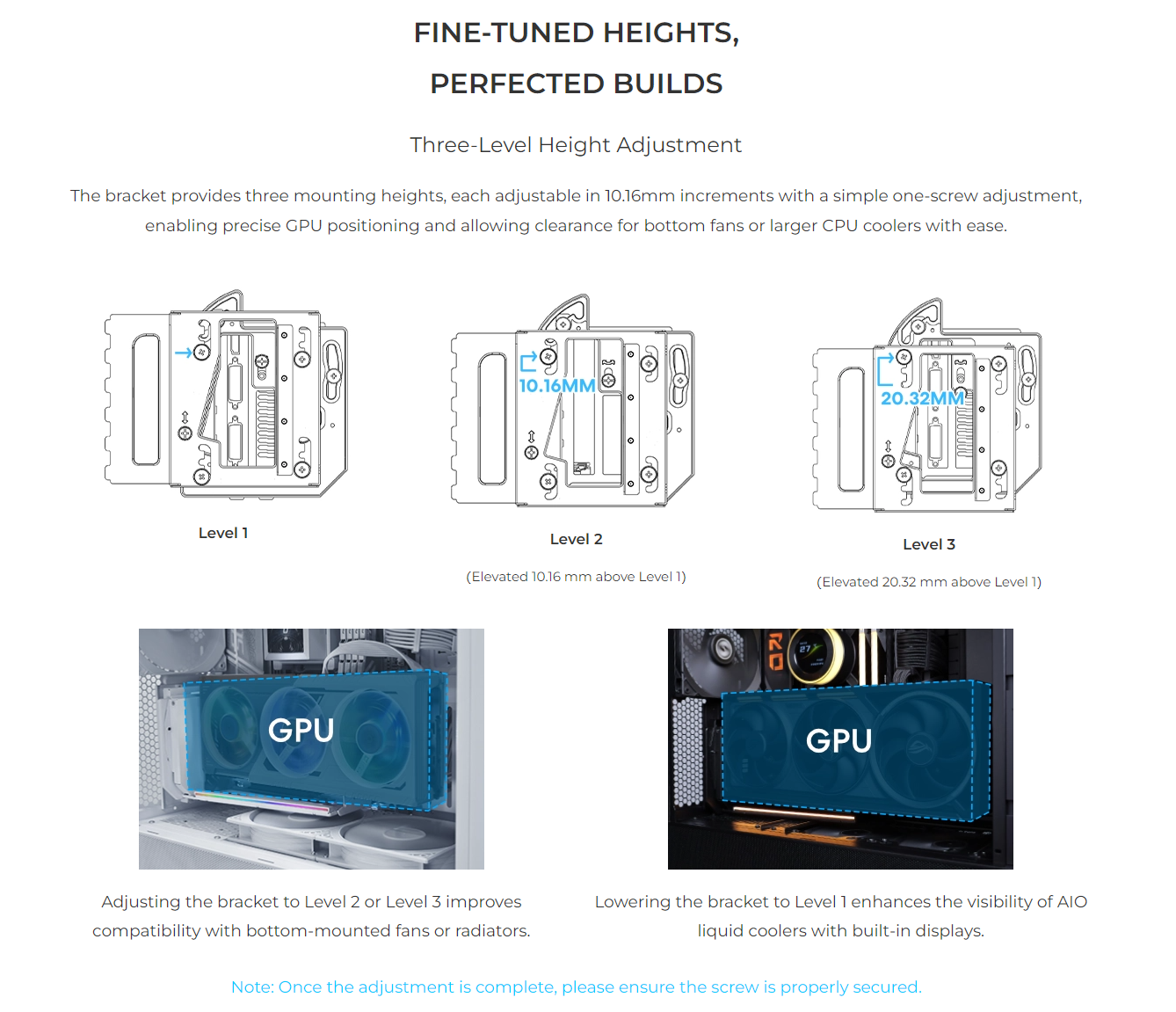 Utilize the included GPU support bracket from the chassis to prevent sagging and maintain perfect alignment of the GPU.