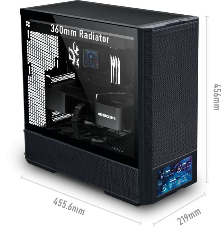 | DIMENSION | (D) 455.6mm x (W) 219mm x (H) 456mm | GPU LENGTH CLEARANCE | 375mm (Max.) |