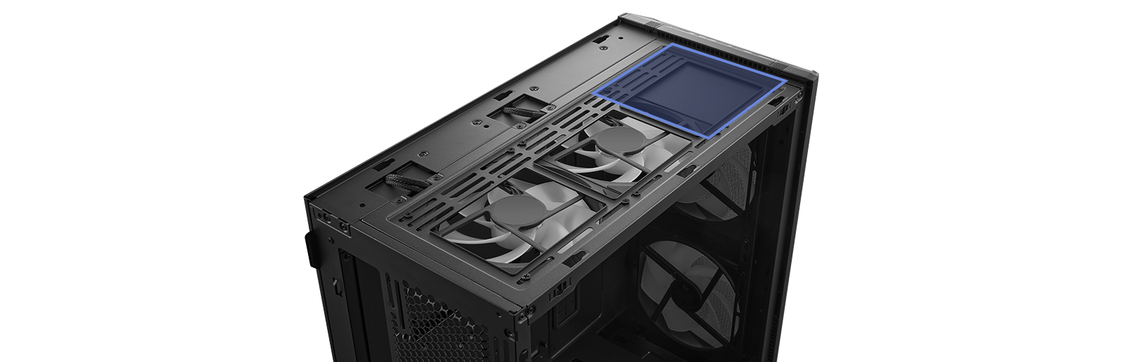 Two grooves have been implemented to allow easy passage of fan cables into the second chamber of the case, simplifying cable