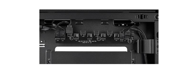 Located in the second chamber behind the motherboard, a SATA-powered fan hub can support up to 4x ARGB and PWM fans.