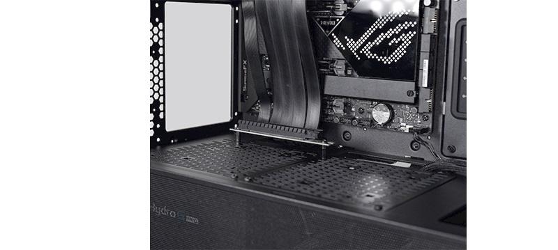 case without obstructing the GPU I/O. This is also possible with a vertically mounted GPU in both air-cooled and water-cooled