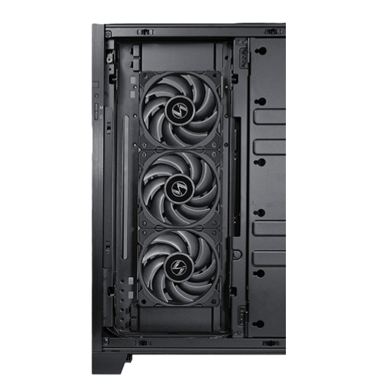 Supports up to 117.2 mm thick radiator/ fan combo in the main chamber