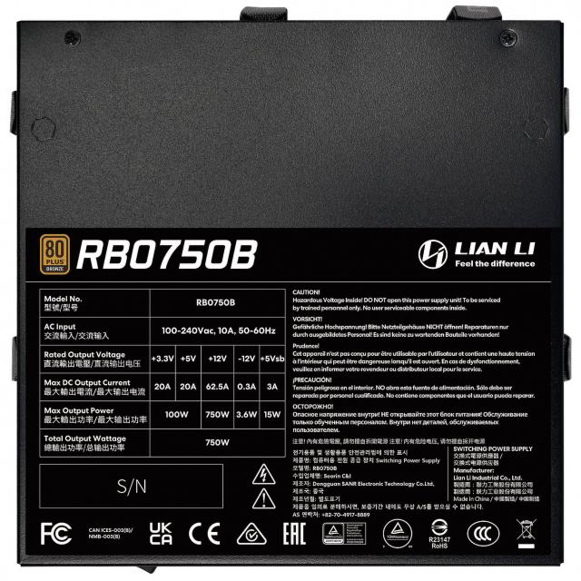 Sursa de alimentare Lian Li RB750B Black 750W 80+ Bronze PCIe 5.1, ATX 3.1