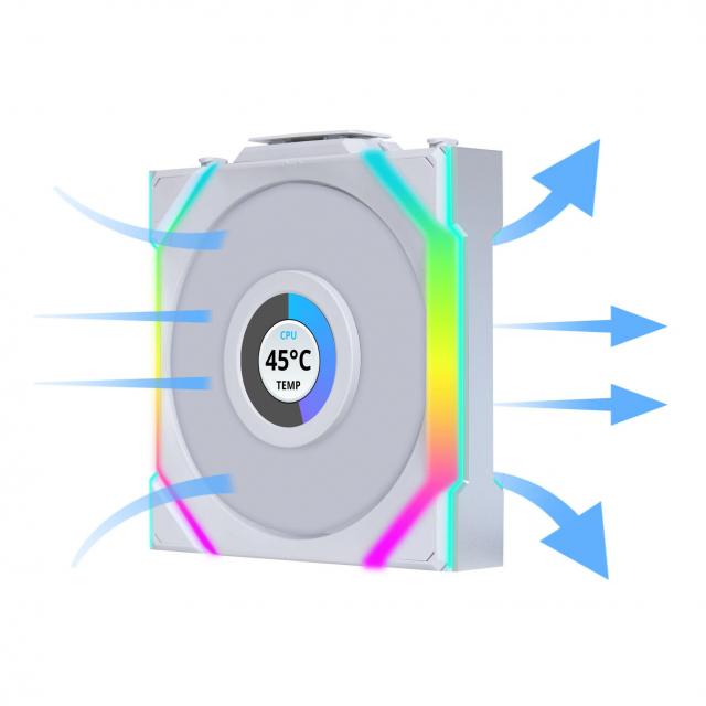 Lian Li UNI FAN SL Wireless LCD 120 este un ventilator ARGB premium, echipat cu un display LCD de 1.6”, oferind control avansat si un design modern.
