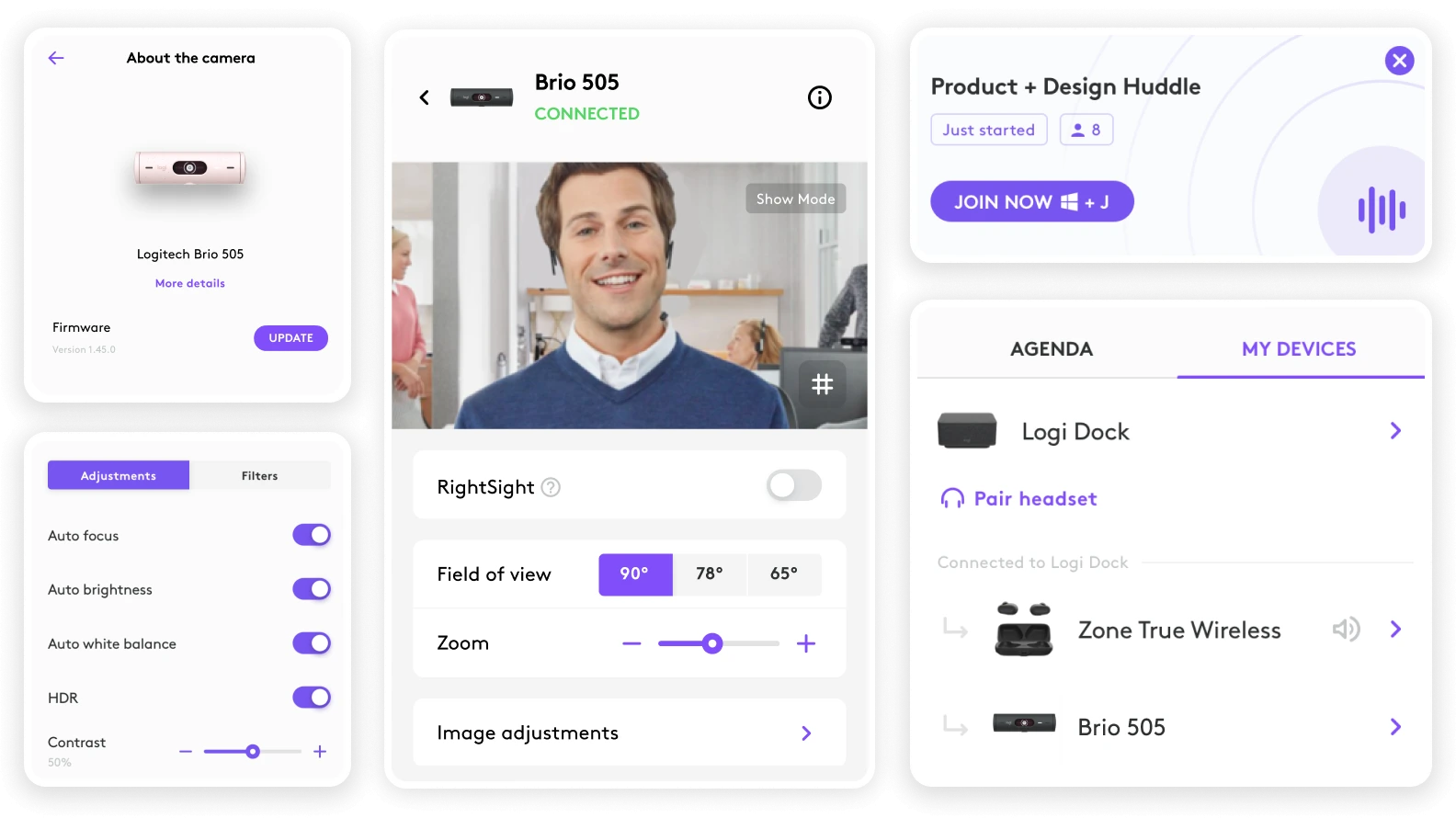 and-play Brio 505 webcam joins a family of thoughtfully-designed Logitech peripherals — like