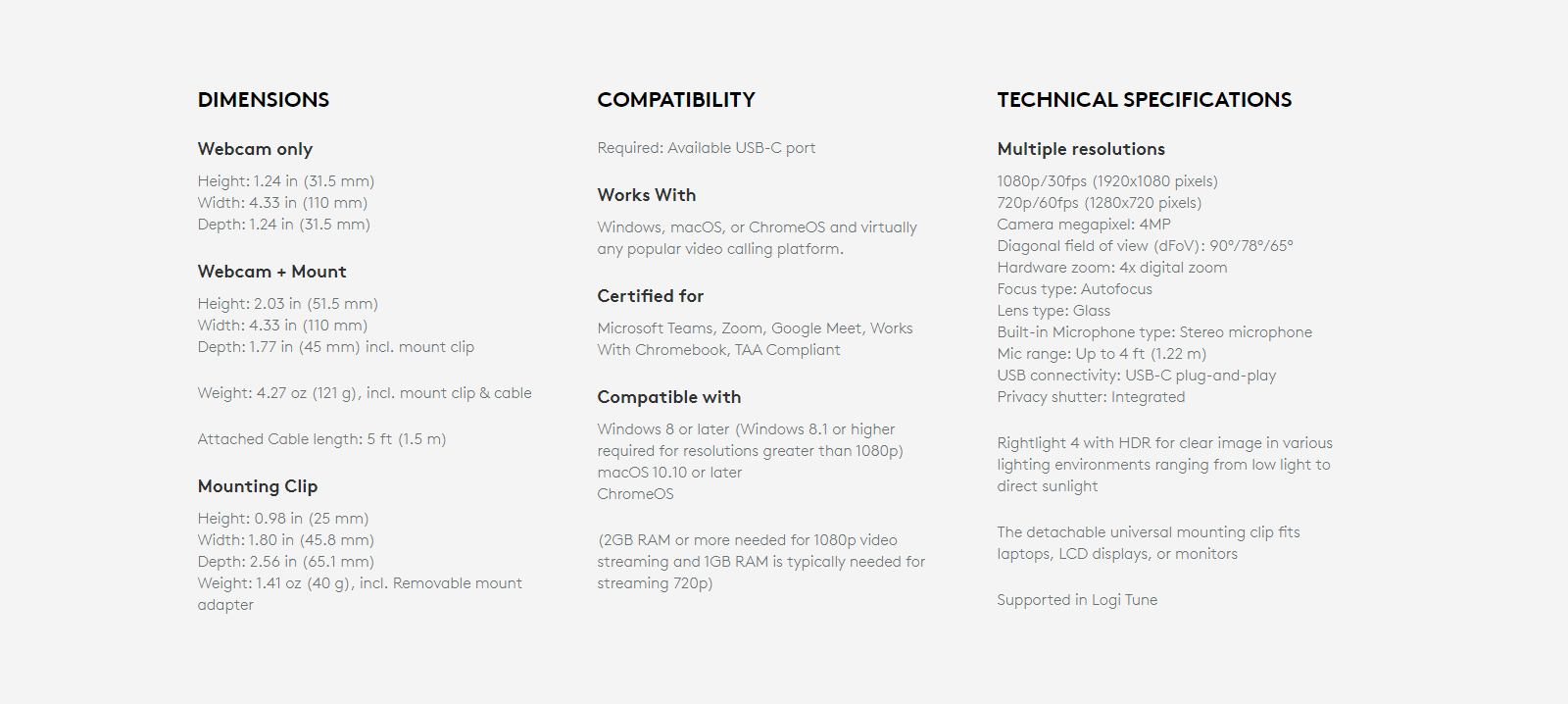 during meetings without leaving the frame. Download Logi Tune for free to enable advanced meeting experiences like RightSight auto-framing.