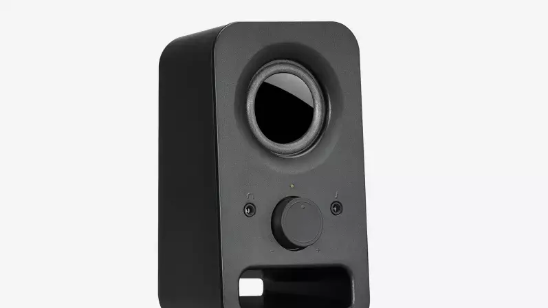 These stereo speakers provide clear sound and the compact design is great for small spaces. Easily access all controls, including the headphone jack, on the right speaker.