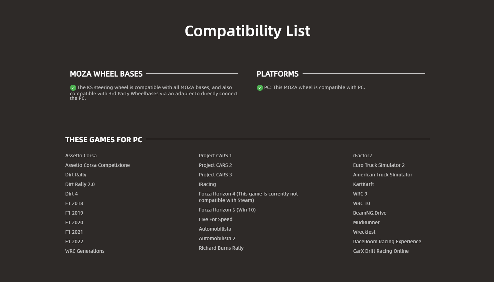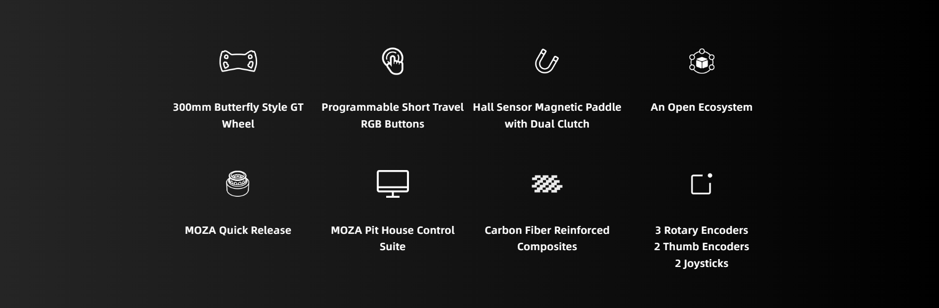 | Rotary Encoders | 3 | Compatibility | All MOZA wheelbases and 3rd party wheelbases |