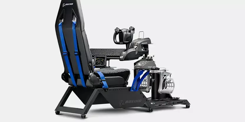 The Next Level Racing Flight Simulator Boeing Commercial Edition enables the Boeing community to interact with a brand they love and engage with the growing community of flight simulation. The seat is covered with a faux wool fabric material to resemble a Boeing Commercial Flight deck chair and provides a comfortable flight experience for the long haul. For a visual brand experience, the Boeing logo is embroidered on the back of the flight seat, laser etched on the side panels, and Boeing Blue highlights have been added. Finally, Next Level Racing has collaborated with Thrustmaster to ensure seamless compatibility with the TCA Yoke Pack Boeing Edition for an inspired Boeing Commercial Flight deck experience. With the Boeing Edition cockpits, users can experience the different categories of aviation ranging from Commercial, Military, General Aviation, and Space.