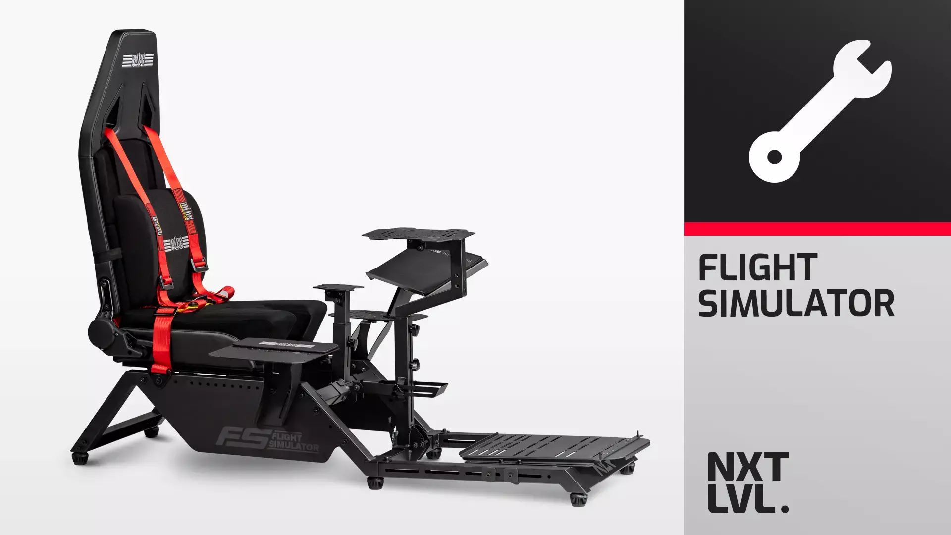 The Next Level Racing Flight Simulator Boeing Military Edition cockpit has been specifically designed and developed with flight users in mind. The Flight Simulator is the first flight cockpit that allows different flight configurations all in one station. With different components included with the Flight Simulator, the flight user can create a commercial flight configuration by attaching a wide range of yokes, rudders, and throttles directly to the cockpit. A military configuration is possible with a unique cut-out design of the seat to attach the Hotas center stick directly to the middle plate, providing a true-to-life combat experience. For general aviation, several adaptor plates are provided to ensure cross compatibility of electronics on the market to be attached directly to the cockpit. Space users can utilize the included Keyboard and Mouse tray to attach the two joysticks and have their keyboard and mouse within reach for the most reactive gaming experience. Based on the user’s flight configuration, the Keyboard Support mounting location can be directly attached to the cockpit in multiple locations. *The Next Level Racing Flight Simulator Boeing Military Edition Cockpit is designed to have the Thrustmaster TCA Yoke Pack Boeing Edition directly mounted to the cockpit with a true positioning of the peripheral for the most realistic flight simulation experience.