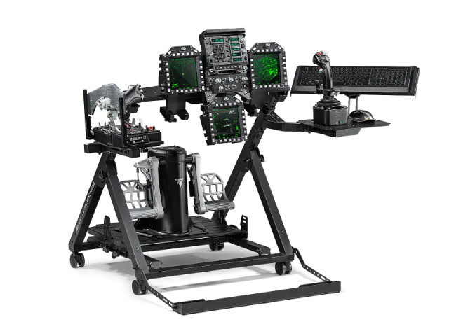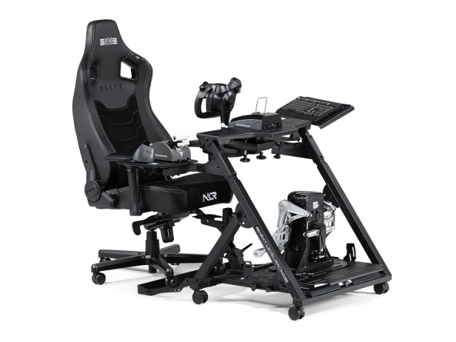 The Next Level Racing Flight range has been specifically designed and developed with flight users in mind. The combination of Flight Seat Pro and Flight Stand Pro offer a range of different configurations to suit the needs of every flight user. The combination is compatible with the Next Level Racing Motion Plus Platform, providing an even more immersive flight experience. Additionally, the Flight Stand Pro is compatible with Next Level Racing Flight Seat Pro, ensuring a seamless integration. With configurations available for General Aviation, Commercial, Space, Military, and helicopter setups, users can choose the perfect configuration to suit their needs. Flight users can create a commercial flight configuration by attaching a wide range of yokes, rudders, and throttles directly to the cockpit. A military configuration is possible with a unique cut-out design of the seat to attach the Hotas center stick directly to the unique center stick arm and plate, providing an immersive combat experience. For general aviation, several adaptor plates are provided to ensure cross compatibility of electronics on the market to be attached directly to the cockpit. Space users can utilize the included Keyboard and Mouse tray to attach the two joysticks and have their keyboard and mouse within reach for the most reactive gaming experience.