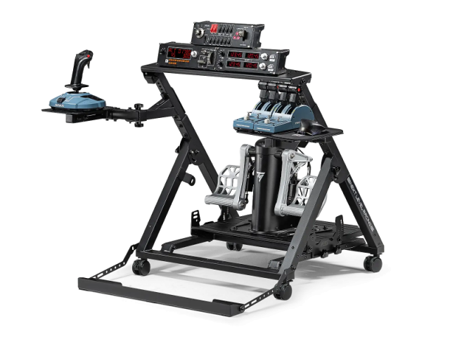 Introducing the Next Level Racing Flight Stand Pro – the ultimate flight simulation experience. With support for commercial, general aviation, and military configurations, this flight stand offers an authentic simulation experience. The centre HOTAS mounting pole with height and angle adjustment allows for true military configuration, and compatibility with major flight electronics. The wide frame design and rudder pedal plate with angle, height, and lateral adjustment accommodates a wide range of rudder pedals. Adaptable to any space, this stand is equipped with castor wheels that allow for easy transportation. The swivel flight arm and mouse/keyboard holder with angle adjustment provides a range of adjustment with customization opportunities. The Flight Stand Pro offers limitless possibilities for your flight simulation. Upgradeable to the full Flight Simulator Pro cockpit with the addition of the Next Level Racing Flight Seat Pro. For a more immersive experience, the Flight Stand Pro is also compatible with Next Level Racing Motion Plus Platform and Motion Platform V3.