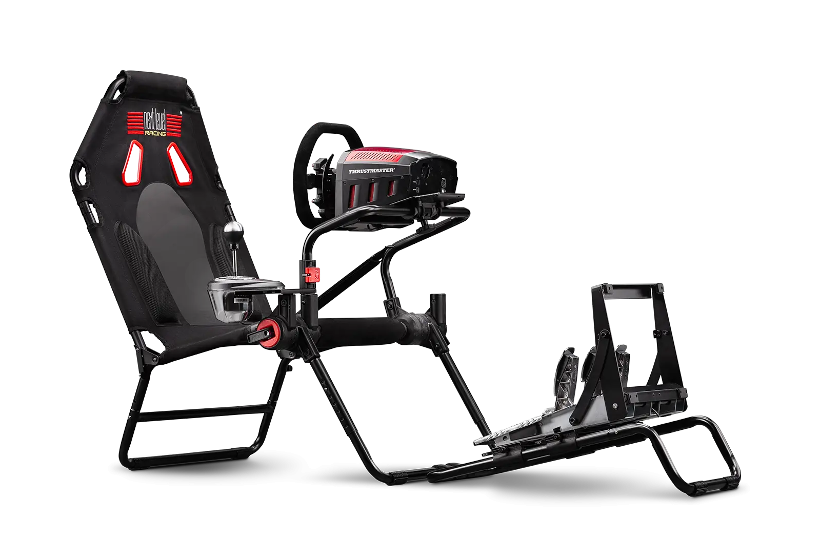 The Next Level Racing GTLite’s unique design folds to pack away even with electronics installed, allowing the user to easily store their cockpit when not in use, making it the perfect cockpit for sim racers that have limited space. This also allows the GTLite to be portable and for the user to take their racing setup from room-to-room when needed.