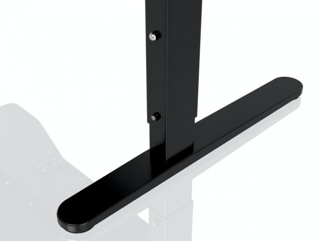 Краката на бюрото са направени от яка стомана. Двата крака са свързани в горната си част със здрава рамка, на която се фиксират плотовете. Благодарени на висококачествената си конструкция, бюрото може да издържи големи натоварвания до 80 килограма. Височината на краката може механично да се регулира със десет сантиметра от 72.5 до 82.5 сантиметра, за да е сигурно, че потребителите седят в удобна поза. Капачките на краката също се регулират, като по този начин осигуряват стабилност дори и върху неравни повърхности.
