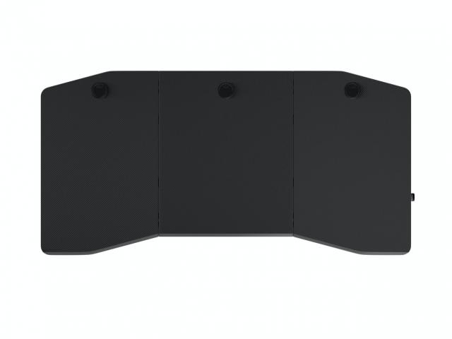 На солидна, но шикозна стоманена основа стоят три 25мм дебели плота от здрав MDF с ефект на карбонови фибри, чиято повърхност създава усещане за фин текстил. Плота може да бъде покрит с поразителен пад с микро-тъкана текстилна повърхност, която е проектирана за издържливост. Всички мишки с обичайни типове сензори могат да бъдат използвани върху него, което прави нуждата от пад за мишка необходим единствено по естетически причини. Благодарение на големите си размери от 160см на дължина и 80см на широчина има достатъчно място за до 3 монитора в допълнение на мишка и клавиатура.