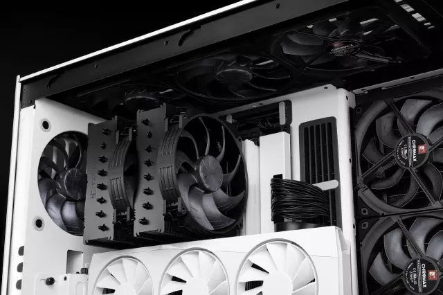 - Design all-black fiecare componenta, inclusiv radiatoarele, heatpipe-urile, ventilatoarele si kitul de montaj, este finisata in negru mat pentru un aspect discret si modern