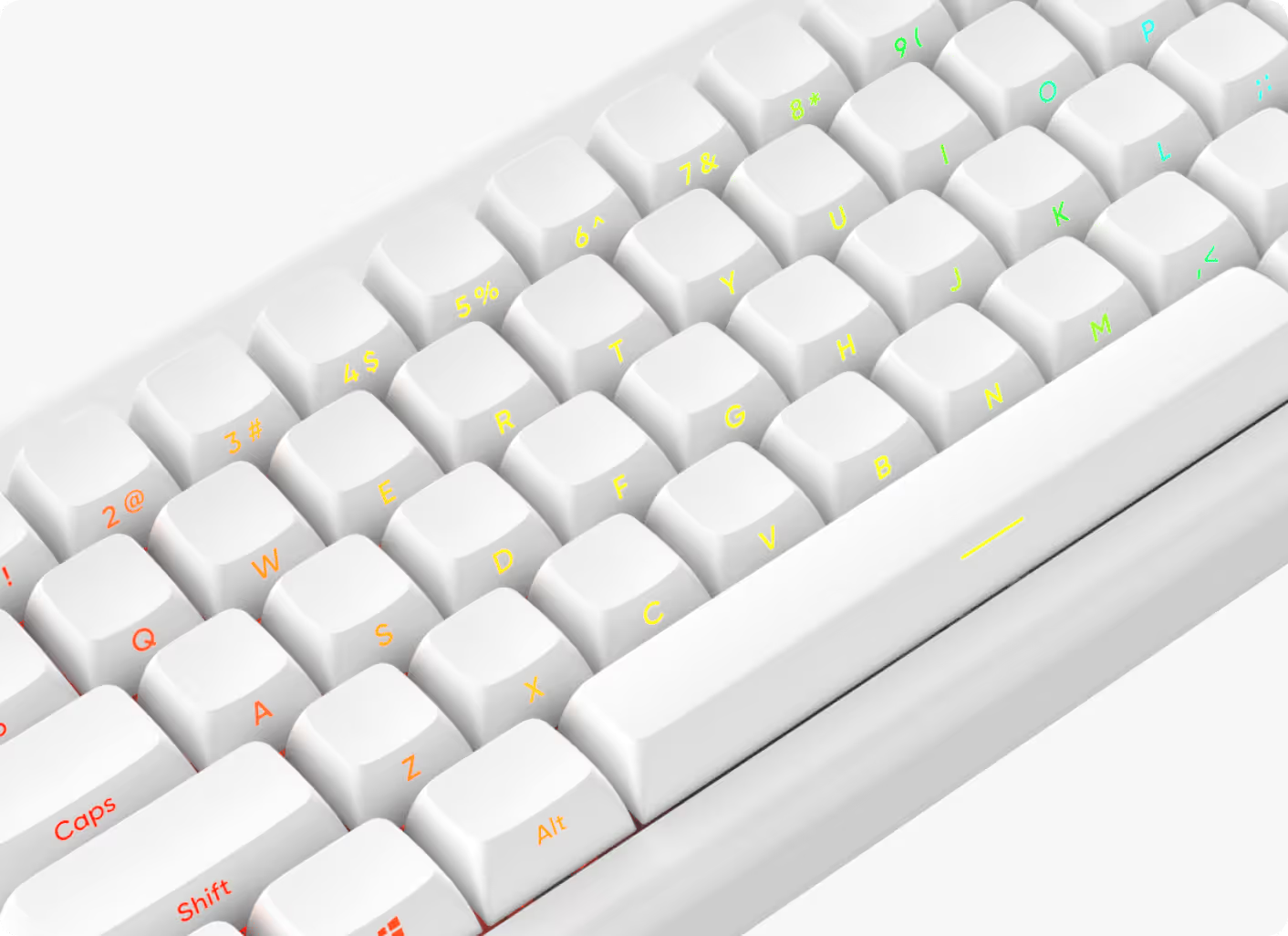| CSA profile keycaps for comfort. Doubleshot legends- durable, fade-proof. |