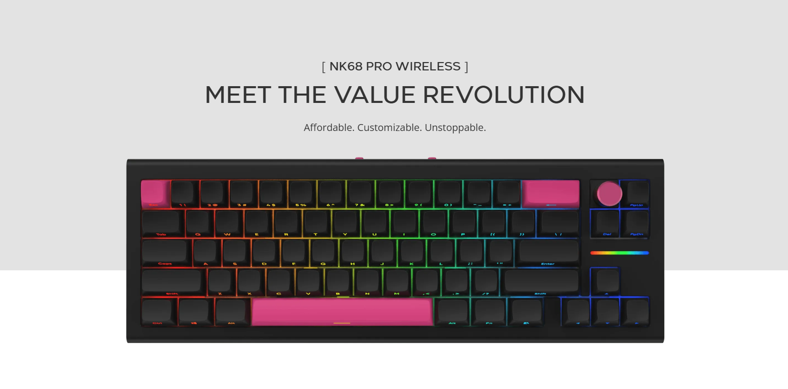 | Switchable volume knob | 65% compact layout, all key functions preserved | Full RGB lighting, fully customizable |