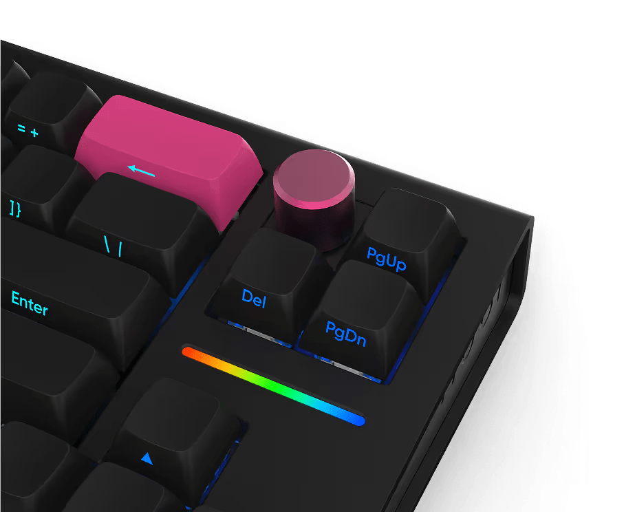 | Switchable volume knob | 65% compact layout, all key functions preserved | Full RGB lighting, fully customizable |