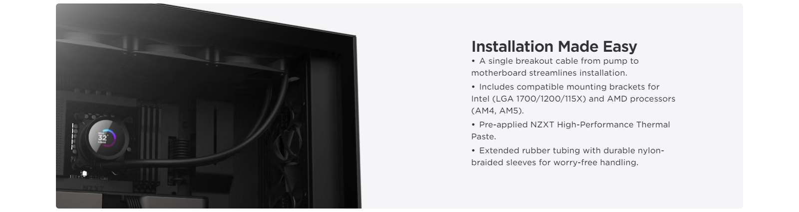 | Intel | Intel Socket LGA 1700 & 1200/115X Intel Core i9 / Core i7 / Core i5 / Core i3 / Pentium / Celeron | AMD | AMD Socket AM5, AM4, sTRX4*, TR4* (*Threadripper bracket not included) AMD Ryzen 9 / Ryzen 7 / Ryzen 5 / Ryzen 3 / Threadripper |