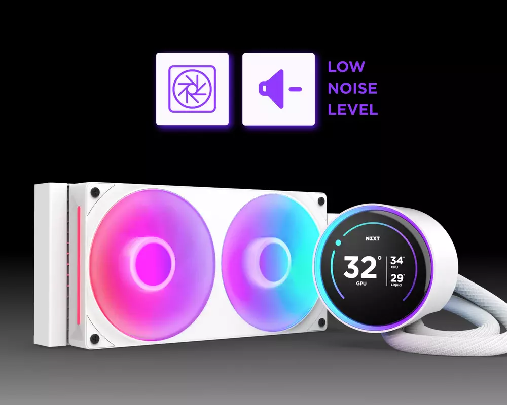 The Kraken Elite brings efficient, low-noise CPU cooling thanks to the NZXT Turbine Pump, while the 2.72-inch IPS LCD and RGB ring offer more ways to personalize your build’s centerpiece.