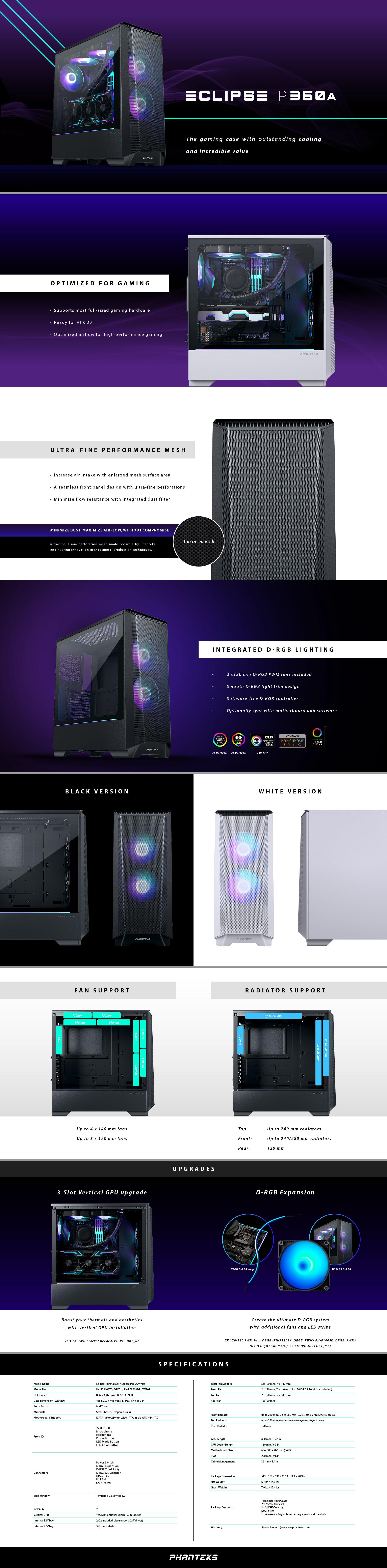 Carcasa Phanteks Eclipse P360A TG White Mid-tower, Alb