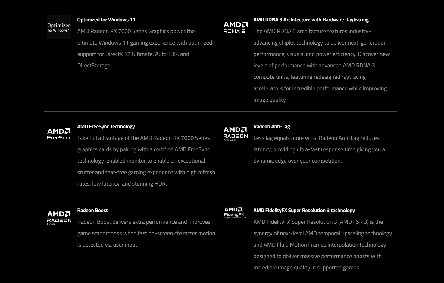 | For more infromation, please refer AMD Website. |