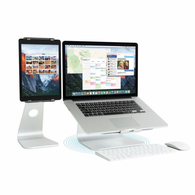 mStand360 cu baza pivotanta transforma notebook-ul intr-o statie de lucru eleganta si stabila, astfel incat sa poti lucra confortabil si in siguranta toata ziua.