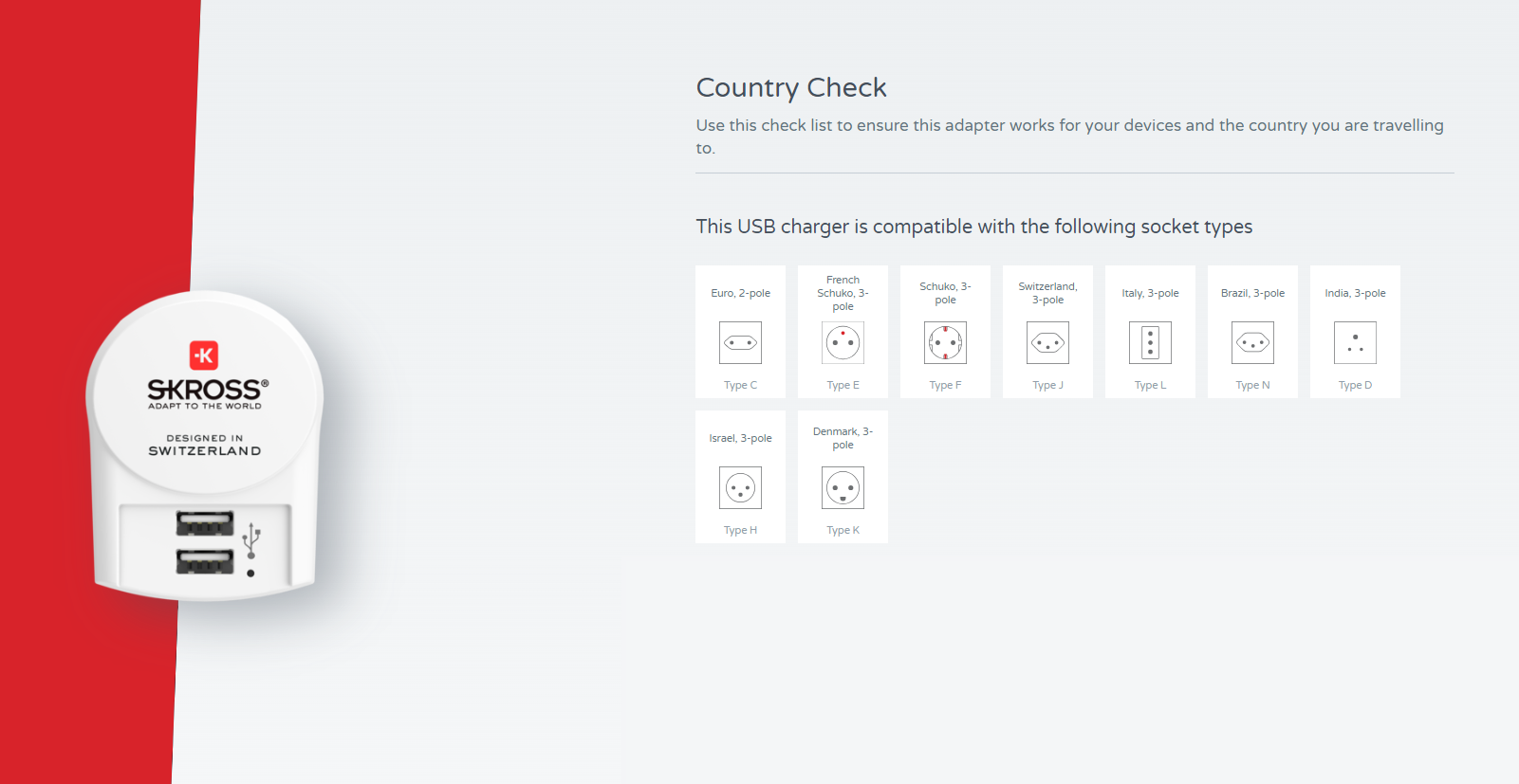 - Compatibil cu toate adaptoarele de calatorie SKROSS
