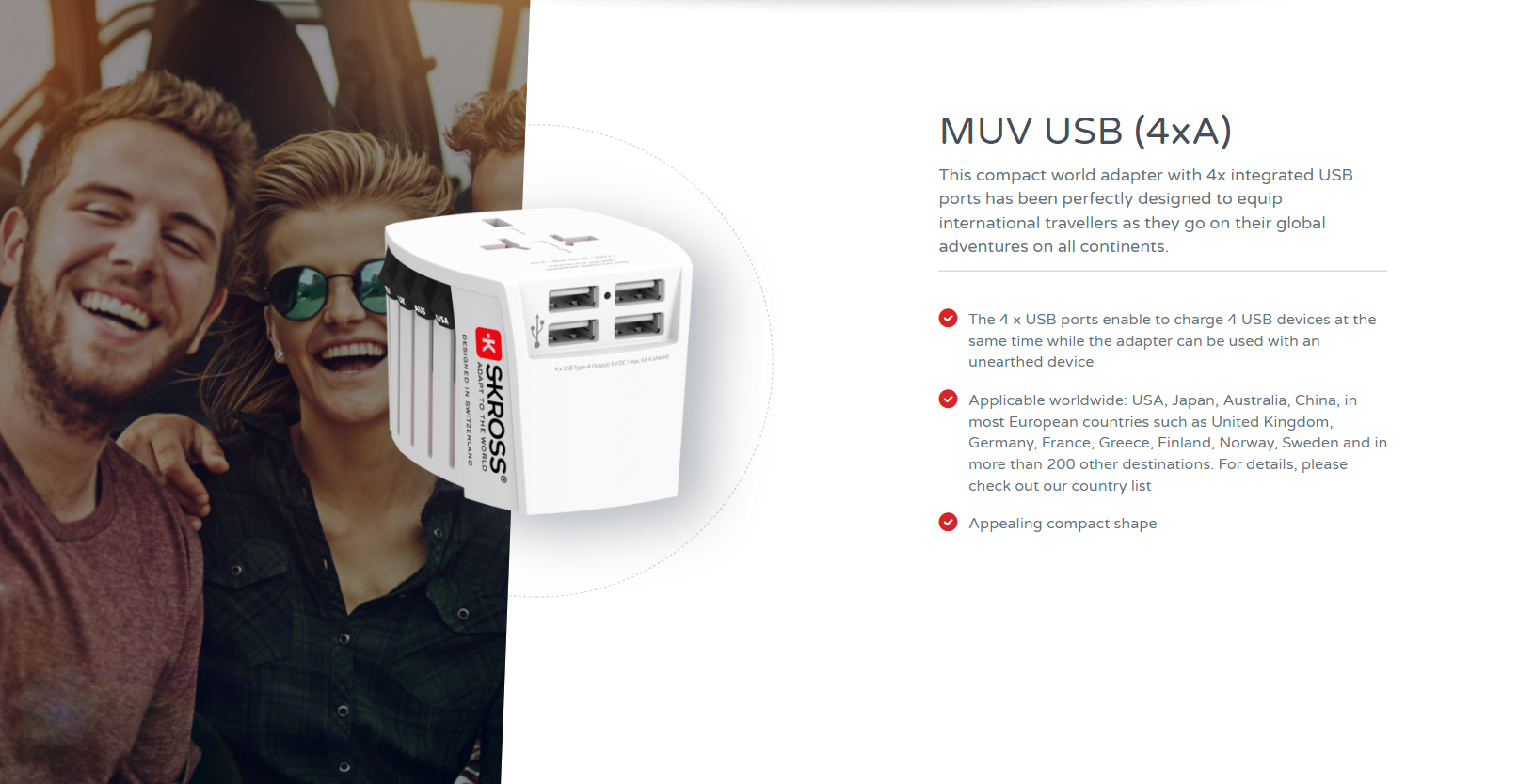 Adaptor de calatorie SKROSS MUV 4 x USB-A, 1.302961, Alb
