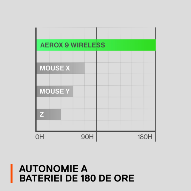 Joacă-te mai mult, cucerește mai mult, încarcă mai puțin. Proiectarea minuțioasă prelungește autonomia bateriei modelului Aerox 9 Wireless până la 180 de ore; doar 15 minute de încărcare oferă mai bine de 40 de ore de gaming și glorie. Mai puțin timp de așteptare, mai multe victorii.
