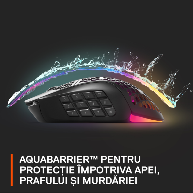 Aerox 9 Wireless, cel mai usor mouse MMO/MOBA de pe piata, are o greutate de doar 89 de grame, optima pentru sesiuni lungi de gaming. Este dotat cu un arsenal de 18 butoane programabile, inclusiv un panou lateral cu 12 butoane si o rotita de scroll tip tilt-click, astfel incat gamerii sa obtina un avantaj considerabil in jocurile cu multe comenzi rapide. Tehnologia Wireless Quantum 2.0 de ultima generatie ofera un gameplay fara intreruperi si fara cabluri printr-o conectivitate flexibila 2.4 GHz si Bluetooth 5.0, iar autonomia exceptionala de 180 de ore si incarcarea rapida iti vor permite sa fii mereu in mijlocul actiunii. Domina toate raidurile si luptele 5v5 fara sa iti faci griji cu privire la praf sau accidente, cu ajutorul scutului AquaBarrier cu grad de protectie IP54, care apara structura si circuitele. Proiectat pana la perfectiune, Aerox 9 Wireless include toate componentele pentru glorie, cu exceptia unuia singur: tu.