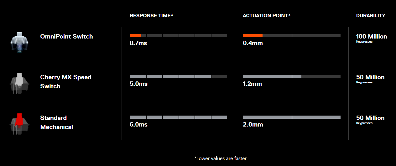 Use a sensitive actuation for WASD and in-game ability keys that need the absolute fastest split-second edge on the competition. Or, adjust slightly deeper for speed with added precision.