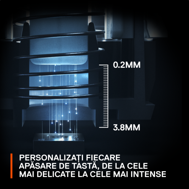 Personalizează-ți tastatura, având posibilitatea de a regla individual distanța de înregistrare a fiecărei taste cu o precizie de 0,1 mm. Ajustează tastele pentru o apăsare ușoară la 0,2 mm sau alege 3,8 mm pentru o apăsare de tastă profundă si decisivă.