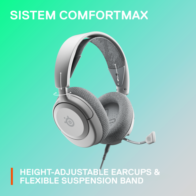- Ajustabile pentru o fixare perfectă — Sistemul ComfortMAX include cupe rotative cu înălțime reglabilă, pernițe AirWeave din spumă cu memorie și o bandă elastică. Greutatea redusa a căștilor îți asigură confortul, indiferent cât timp te joci.