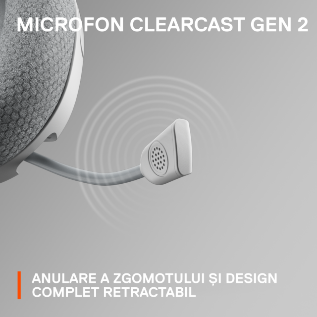 - Microfon cu anulare a zgomotului asistată de Inteligență Artificială — Microfonul ClearCast Gen 2 reduce zgomotul de fond până la 25dB pe orice platformă și îți permite să comunici cu o claritate impecabilă. Pentru un aspect mai elegant poți retrage complet microfonul în cască.