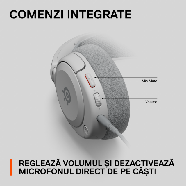- Setări ușoare — Comenzile integrate permit o reglare convenabilă a volumului și punerea pe mute direct de pe căști.