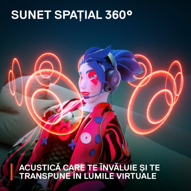 - Sunet spațial 360° - Captivantul sunet surround te transportă în lumea jocurilor, permițându-ți să auzi fiecare pas critic, reîncărcare sau semnal vocal pentru a te afla în avantaj. *Total compatibil cu Tempest 3D Audio pentru PS5 / Microsoft Spatial Sound
