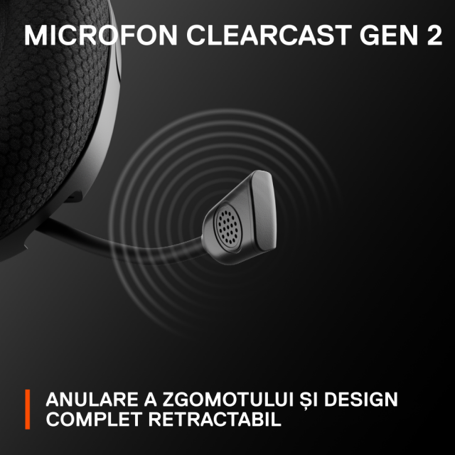 - Microfon cu anulare a zgomotului asistată de Inteligență Artificială — Microfonul ClearCast Gen 2 reduce zgomotul de fond până la 25dB pe orice platformă și îți permite să comunici cu o claritate impecabilă. Pentru un aspect mai elegant poți retrage complet microfonul în cască.