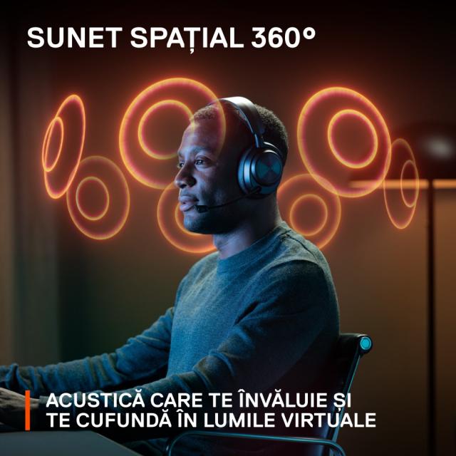 - "Sunet spatial 360° - Captivantul sunet surround te transporta in lumea jocurilor, permitandu-ti sa auzi fiecare pas critic, reincarcare sau semnal vocal pentru a te afla in avantaj.