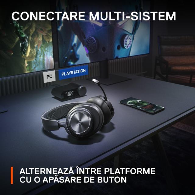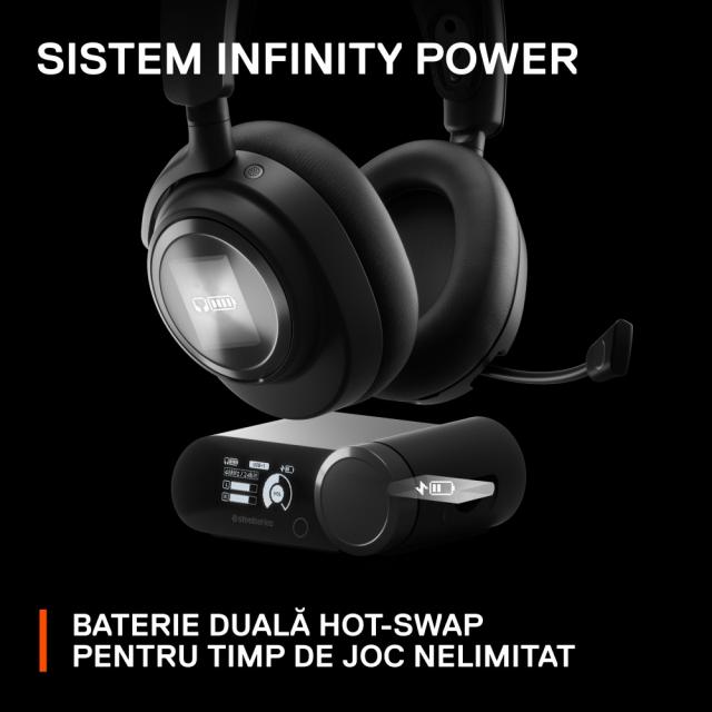 Transpune-te in peisajul sonor asa cum nu ai facut-o niciodata - Arctis Nova Pro Wireless aduce un sunet de calitate legendara cu sistemul acustic Nova Pro. Difuzoarele premium de inalta fidelitate ofera o puritate audio impecabila pentru un nou standard al castilor de gaming. Fiecare detaliu te inconjoara datorita sunetului spatial 360° care te atrage intr-o lume diferita, impreuna cu software-ul Sonar si anularea activa a zgomotului care elimina orice altceva. Nu pune niciodata pauza cu sistemul de baterii hot-swap Infinity Power. Selecteaza destinatia cu usurinta, deoarece baza wireless iti permite sa comuti intre platformele de gaming printr-o apasare de buton si chiar sa te conectezi simultan la un alt dispozitiv audio folosind conexiunea secundara Bluetooth. Experimenteaza Sunetul Atotputerninc pentru a percepe sunetul asa cum nu ai facut-o niciodata pana acum.