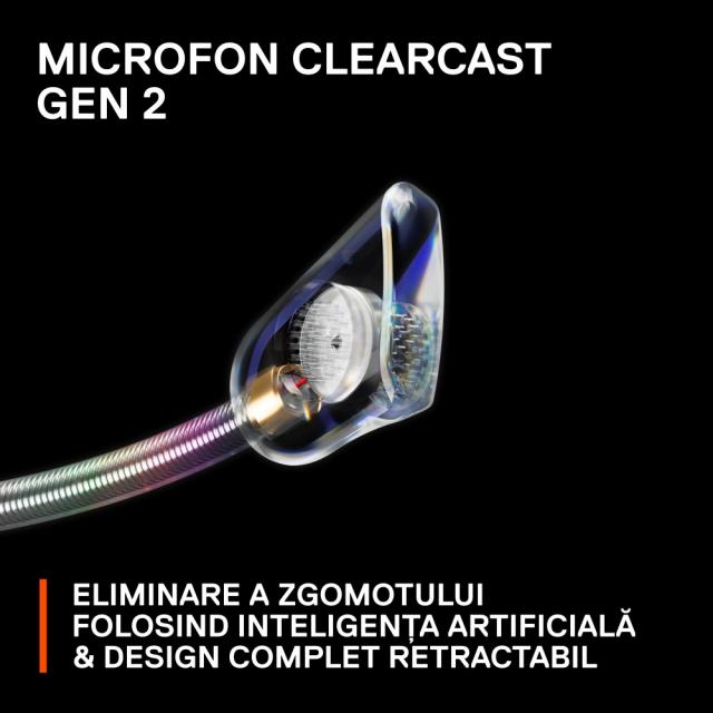- Microfon cu anulare a zgomotului asistata de Inteligenta Artificiala - Microfonul ClearCast Gen 2 reduce zgomotul de fundal pentru a-ti oferi o comunicare clara, sustinuta de software-ul Sonar prin puternici algoritmi AI. De asemenea, pentru un aspect mai elegant microfonul poate fi retras complet in casca.
