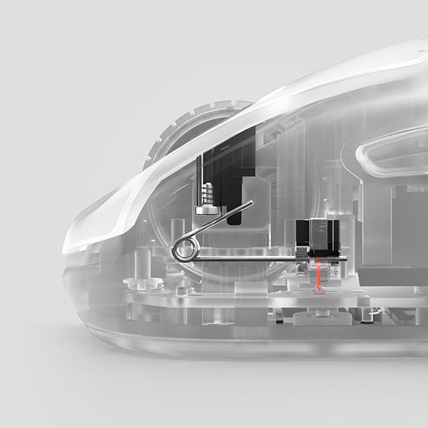 The combination of optical sensor, oversized spring and magnetic connection guarantee zero lag, debounce, and a lifetime of consistently crispy clicks.