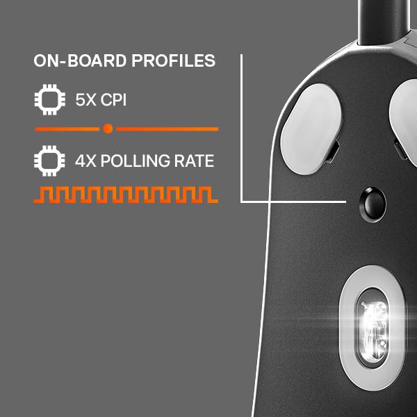 Alegeti pana la 4 viteze si pana la 5 configurari prestabilite sau personalizate CPI direct din mouse ca sa fiti mereu gata, nu conteaza ce joc jucati sau unde va aflati.